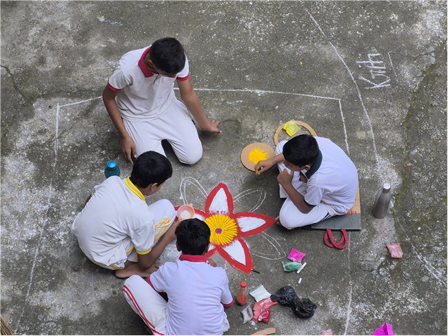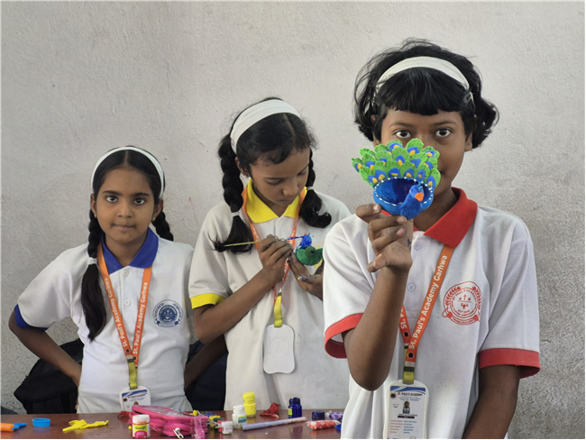 Today, St. Paul's Academy came alive with vibrant colors and artistic brilliance as students showcased their creativity in the much-anticipated Rangoli Competition. With intricate patterns, cultural motifs, and a burst of hues, the event reflected the spirit of unity, tradition, and artistic excellence. Participants from various classes brought their imaginations to life on the floor, turning the campus into a canvas of celebration and festivity. The competition not only highlighted the students’ talent but also fostered teamwork, patience, and a deep appreciation for India’s rich cultural heritage.